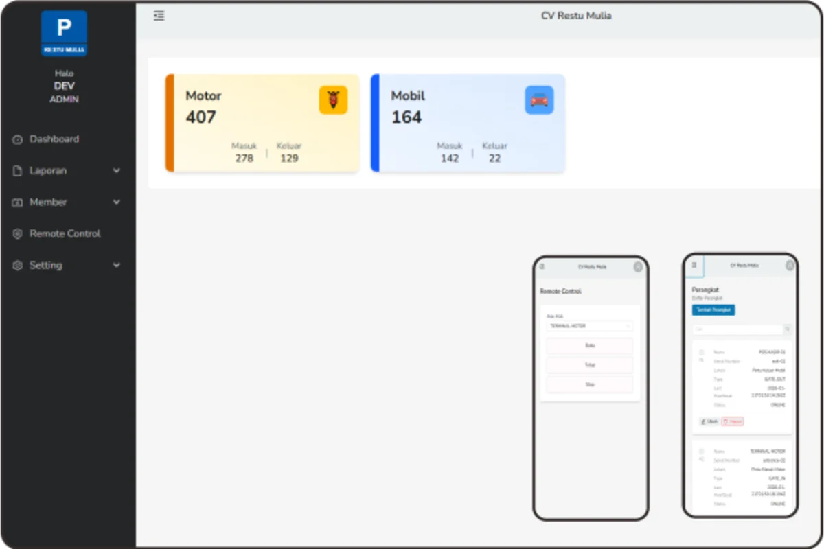 An integrated smart parking system powered by IoT devices, where a Raspberry Pi manages ticket generation, printing, and entrance gate control, while an ESP32 handles exit gate operations. The system is supported by a RESTful API built with NestJS and PostgreSQL, and a ReactJS-based dashboard for real-time monitoring and parking transaction management.